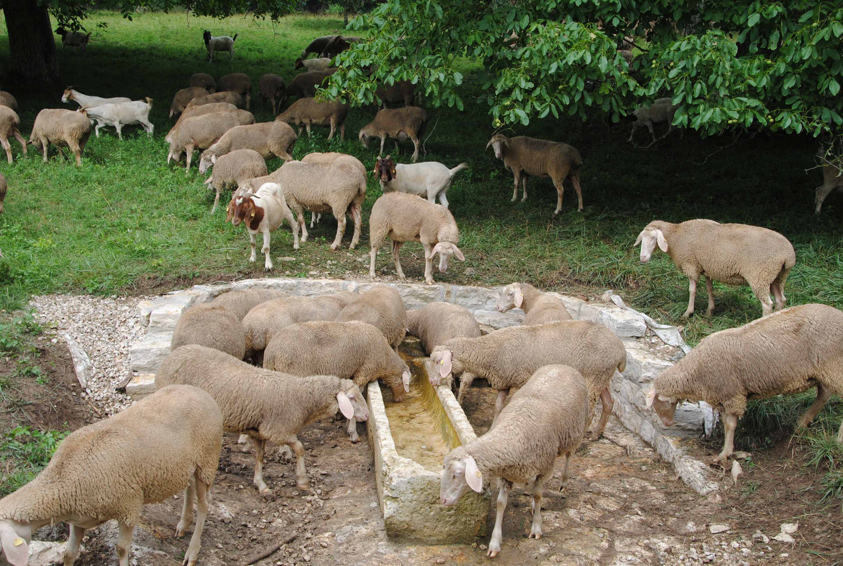 - Zum Schutz vor Weidetieren wurden die jungen Bäume mit einem Ziegenverbissschutz aus Metall versehen